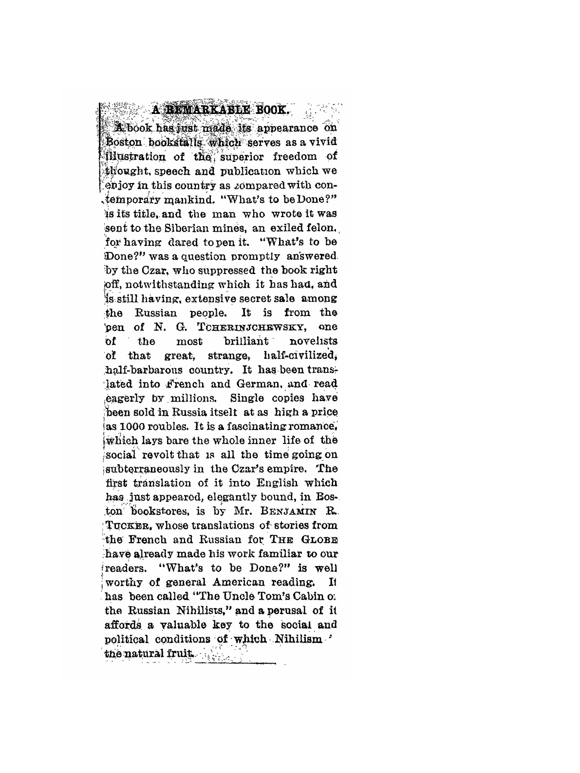 "What's to be Done?: A Romance" by N. G. Chernyshevsky.