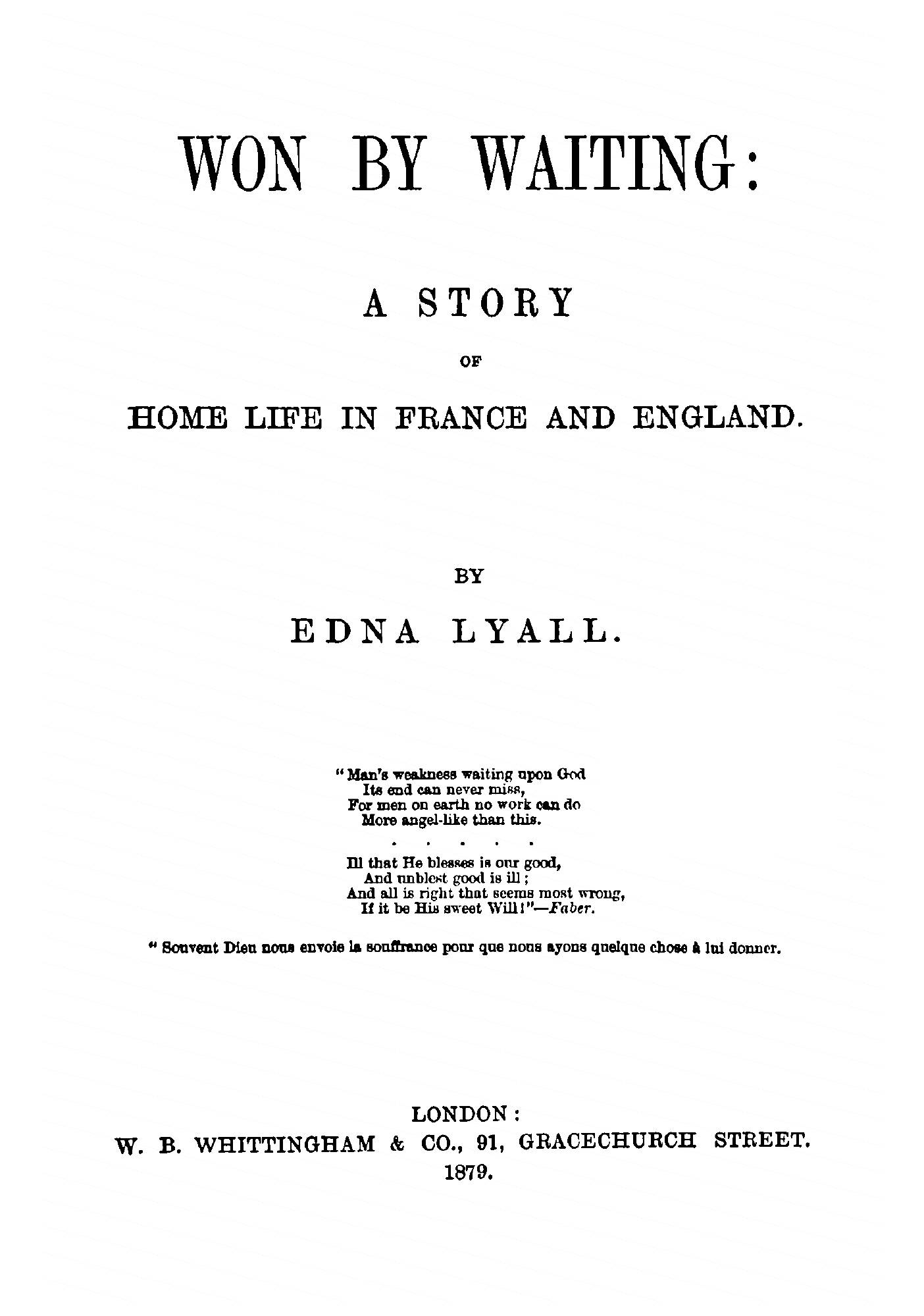 Печатная книга «Won by Waiting, a Story, by Edna Lyall» в мягкой обложке, язык - английский. В книге 423 страниц, она напечатана на белой офсетной бумаге плотностью 80 г/м². Формат издания — 165x235 мм. Все книги аккуратно упаковываем в прочный трёхслойный непрозрачный картонный конверт.