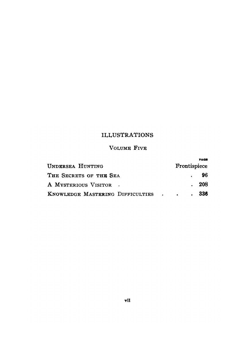 The Vincent Parke set contains 36 stories and short stories, 44 illustrations and a portrait of Jules Verne, consisting of fifteen volumes. This is volume 5 contains: Twenty Thousand Leagues Under the Sea; The Mysterious Island: Dropped from the Clouds.