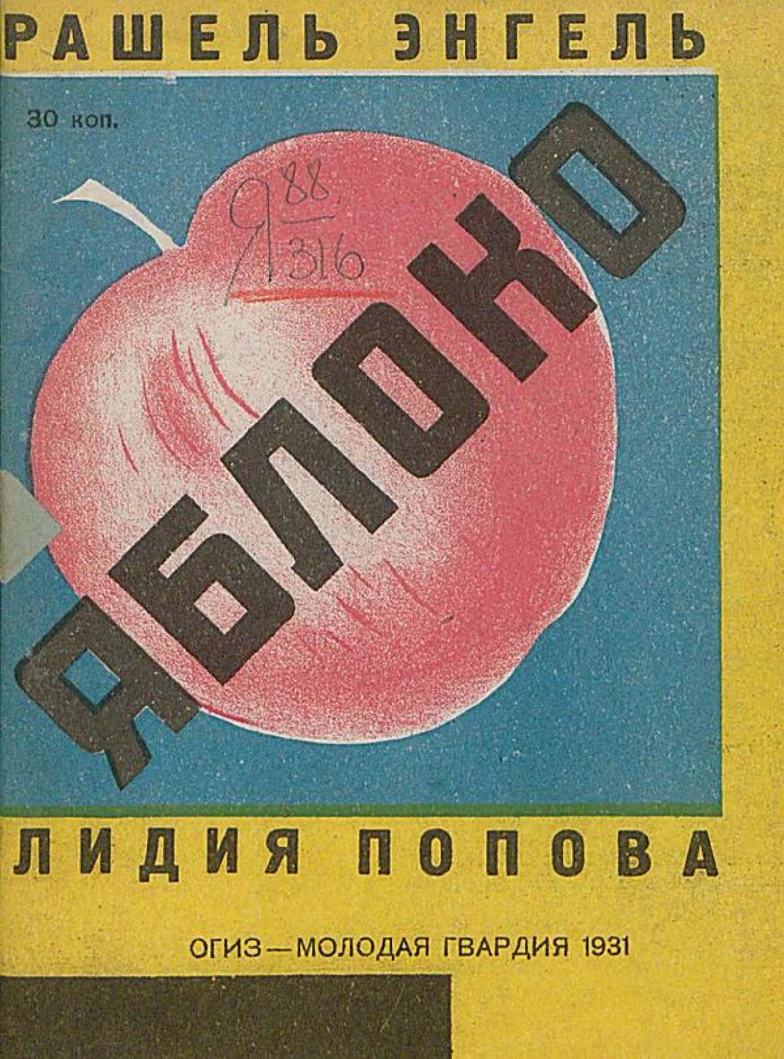 Энгель, Рашель Абрамовна (1900–1944). Яблоко [Рассказ для детей младш. возраста] / Рашель Энгель; Рис. Л. Поповой. — 2-е изд. — Москва; Ленинград: Огиз — Мол. гвардия, 1931 (М. : 1-я Образцовая типо-лит.). — [20] с. : крас. ил.; 20×15 см.