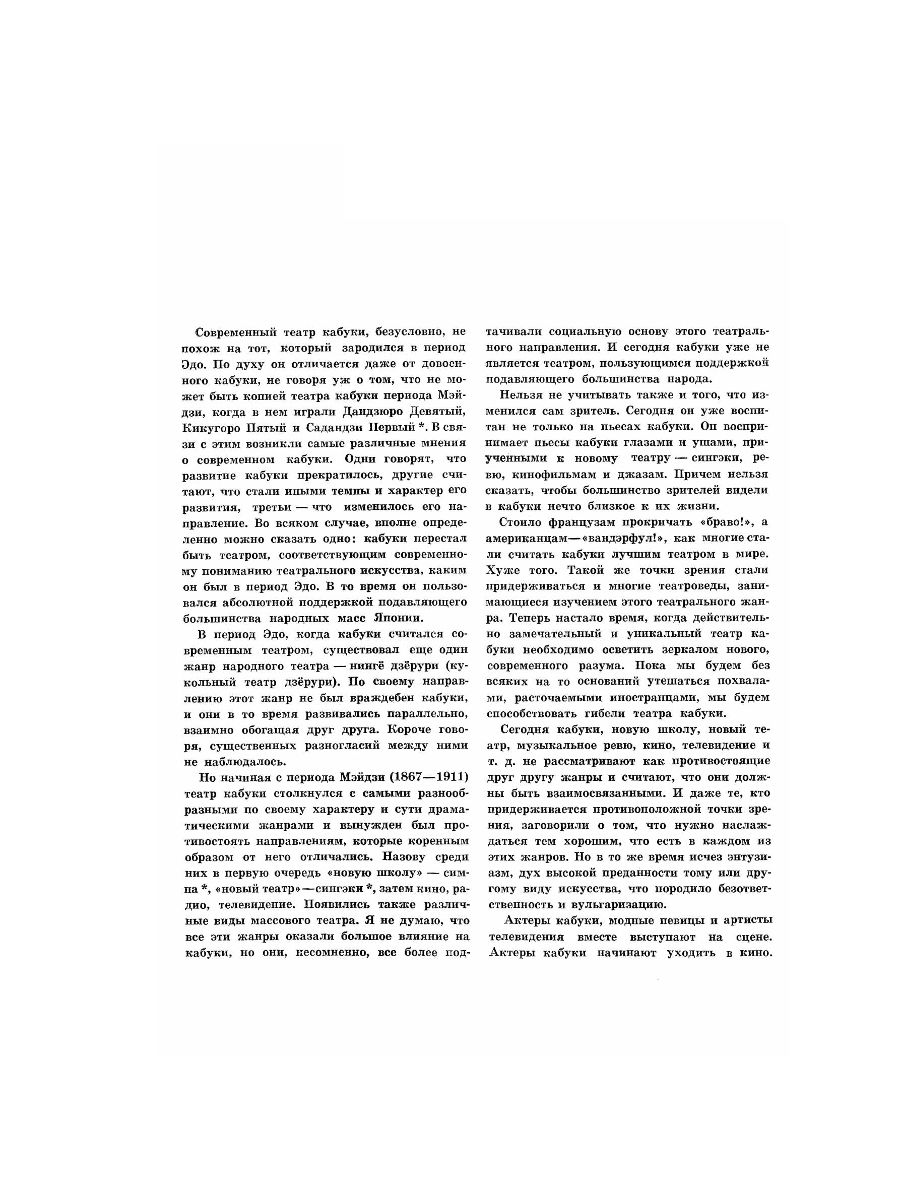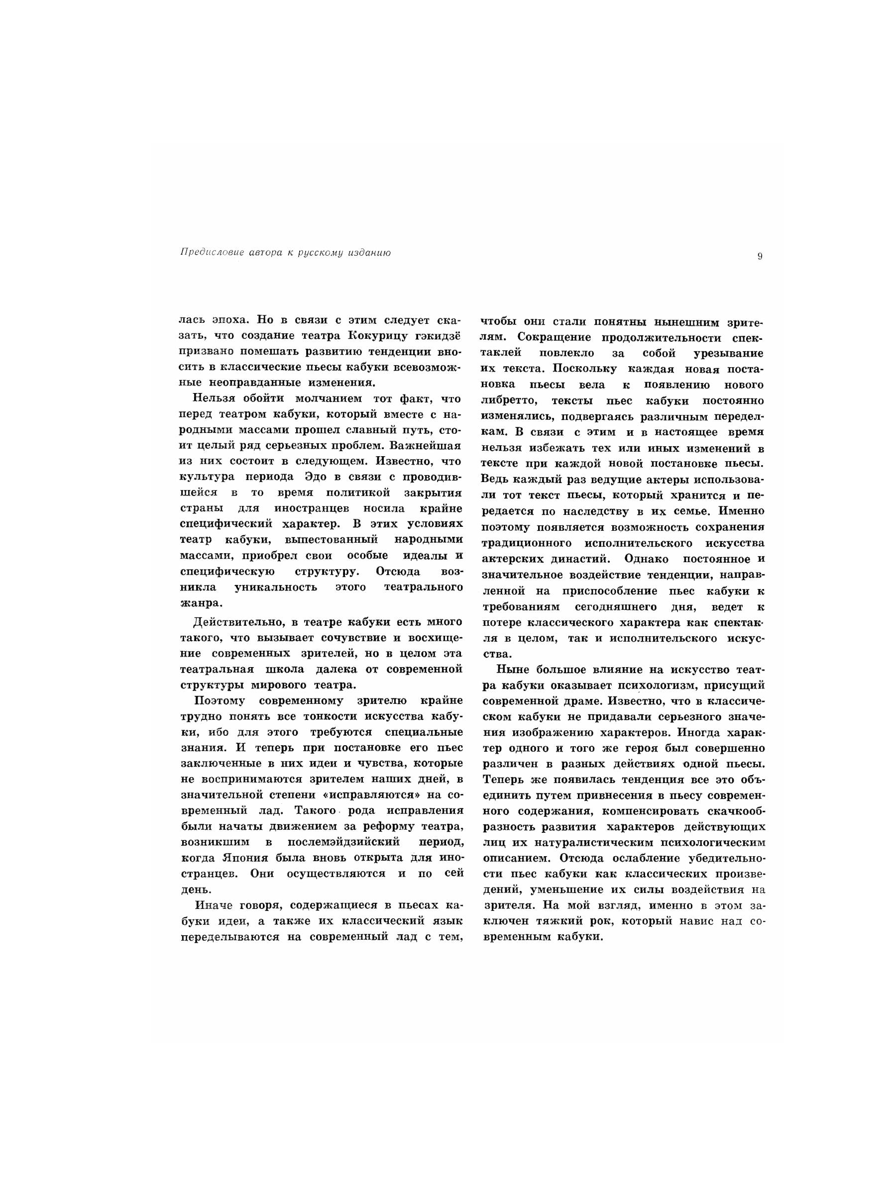 Автор книги Гундзи Масакацу — профессор Токийского университета Васэда. Крупнейший в Японии специалист-театровед, он всю свою жизнь отдал изучению национальных форм японского сценического искусства, ратуя за их сохранение и развитие. Книга посвящена искусству прославленного театра кабуки и представляет собой театроведческую работу, посвященную одному из направлений мирового сценического искусства, каким является искусство кабуки. В книге освещаются важнейшие вопросы развития и специфики этого театрального жанра, характеризуются пути становления кабуки, при этом рассматриваются и театральные формы, исторически предшествовавшие его появлению; подробно анализируются конструкция театра, состав зрителей и актеров, специфика жизненного уклада, метод их подготовки; особое внимание в ней уделено драматургии кабуки, актерской технике, оформлению сцены и даже таким специальным вопросам, как декорации, грим, освещение и т. д.; немало страниц отведено показу связей театра кабуки с обществом.