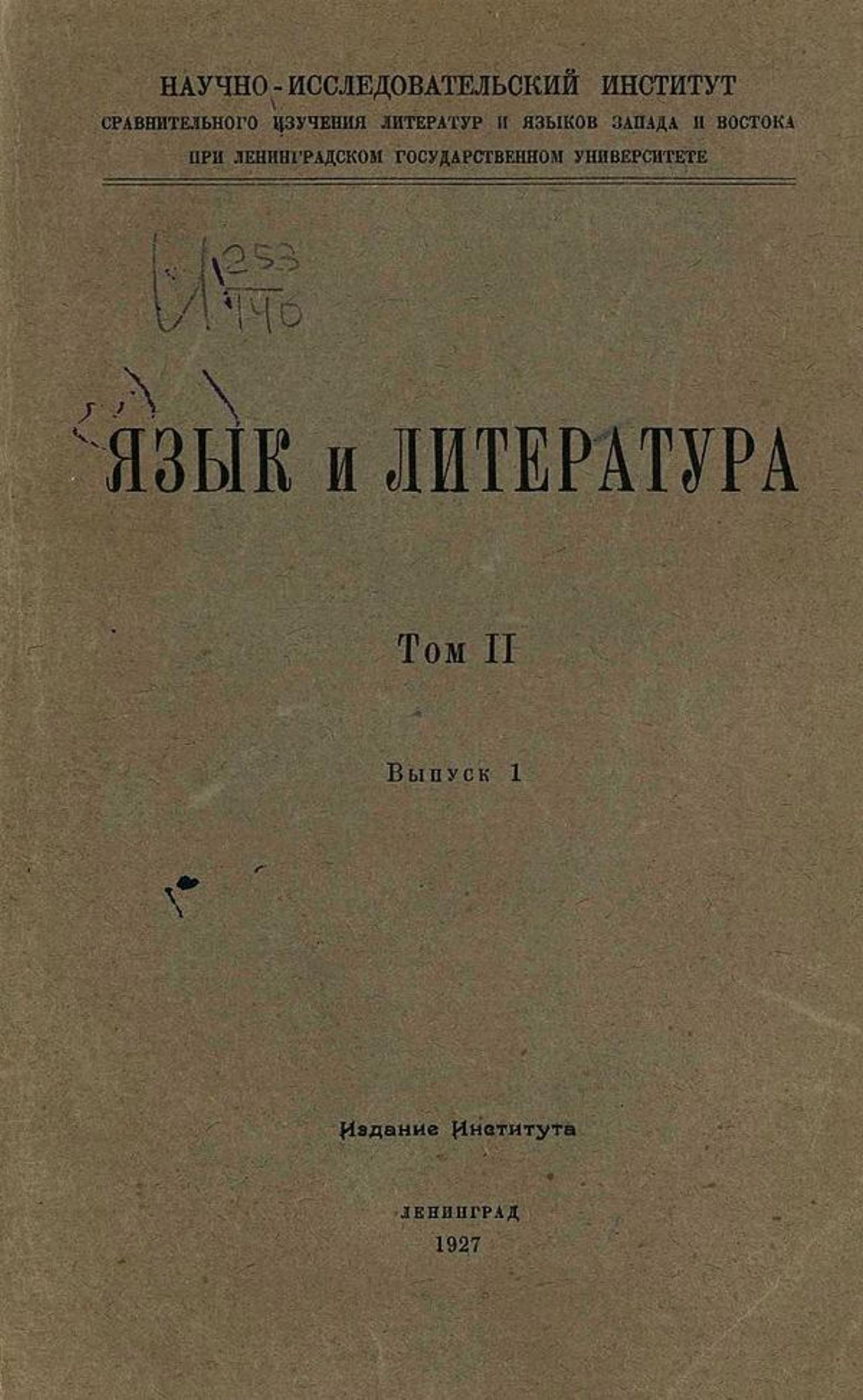 Язык и литература [Текст] : т. 1–8 / Науч.-исслед. инст. речевой культуры. — Ленинград : Акад. наук СССР, 1926–1932. — 25 см. Т. 2, вып. 1 [Текст]. — 1927. — [4], 197 с.