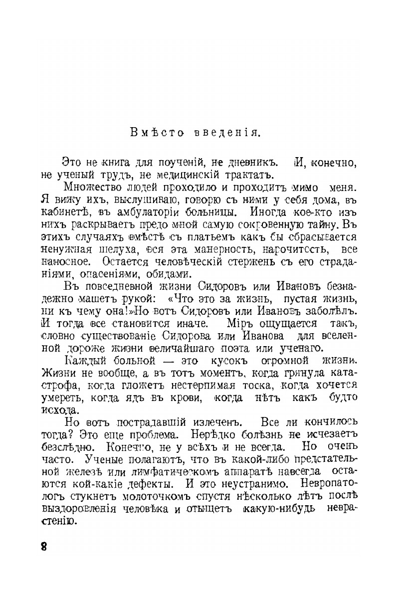 О чем говориться во всех случаях, рассказанных в этой книге? По существу, о венерических болкезнях. Но ведь о них уже столько написано! Нужен ли еще один том повторений? Я думаю, нужен. До сих пор существует мнение, что больные всегда знают о своей болезни. Но это не верно. Достаточно сказать, что в огромном большинстве женщины - жены и матери - понятия не имеют о том, что они заражены. Они искренно убеждены в безупречности своего здоровья. Да они никогда и не болели. Между тем они заражают. Лев Семёнович Фридланд (1888-1960) - советский венеролог, писатель, популяризатор медицинских знаний. "За закрытой дверью" - одна из наиболее известных его книг, выдержавшая пять переизданий в 1927-28 гг. В ней автор рассказывает о разнообразных случаях из своей врачебной практики. С научно-медицинской точки зрения все изложенные в книге клинические случаи и этиологические данные соответствуют действительности. Автор говорит о необходимости мер социального и экономического характера для борьбы с венерическими заболеваниями, об ознакомлении широких масс с сущностью этих заболеваний и способами их предупреждения.