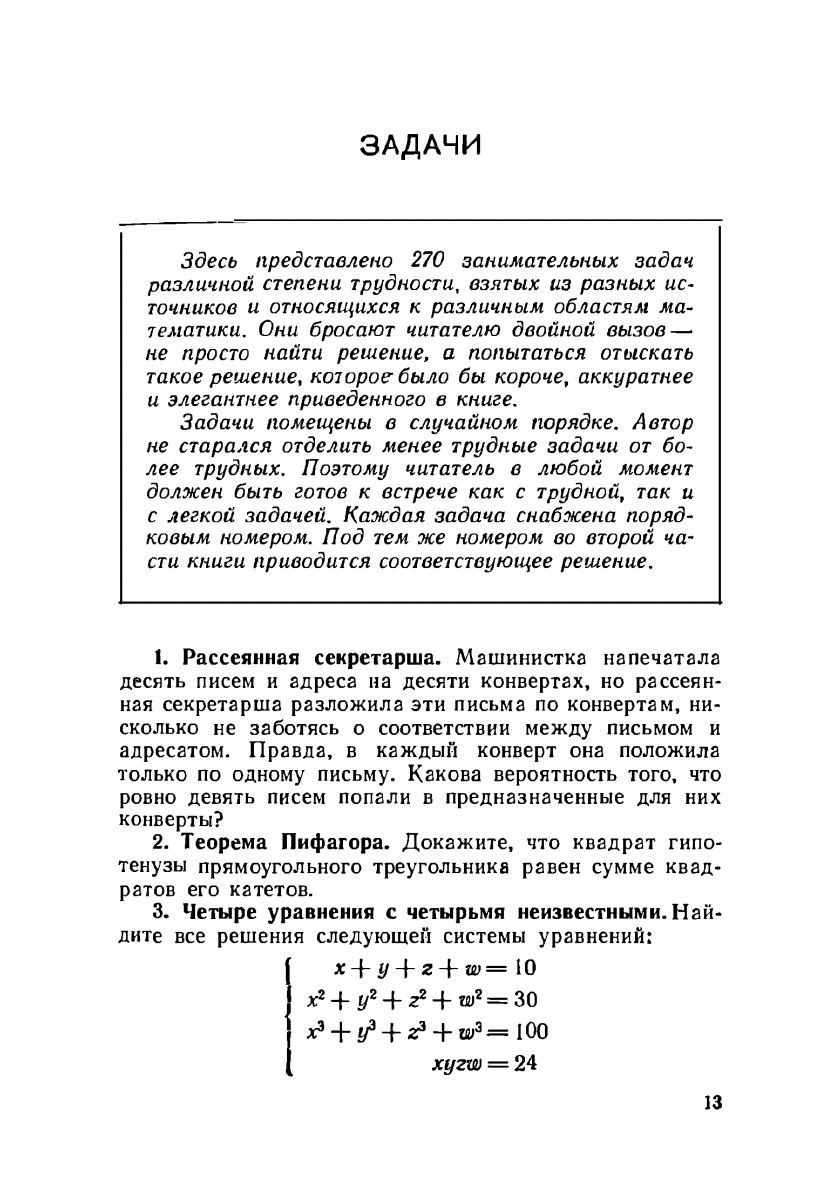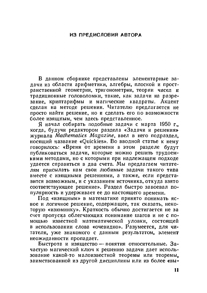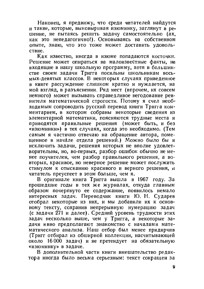 Книга американского педагога Чарльза Тригга открывает новую серию "Задачи и олимпиады". В ней собраны задачи, которые при довольно сложной формулировке допускают простое и изящное решение. Среди авторов оригинальных решений - имена известных американских математиков. Сборник рассчитан на широкий круг читателей, интересующихся математикой, особый интерес представляет для увлеченных этим предметом учащихся старших классов.