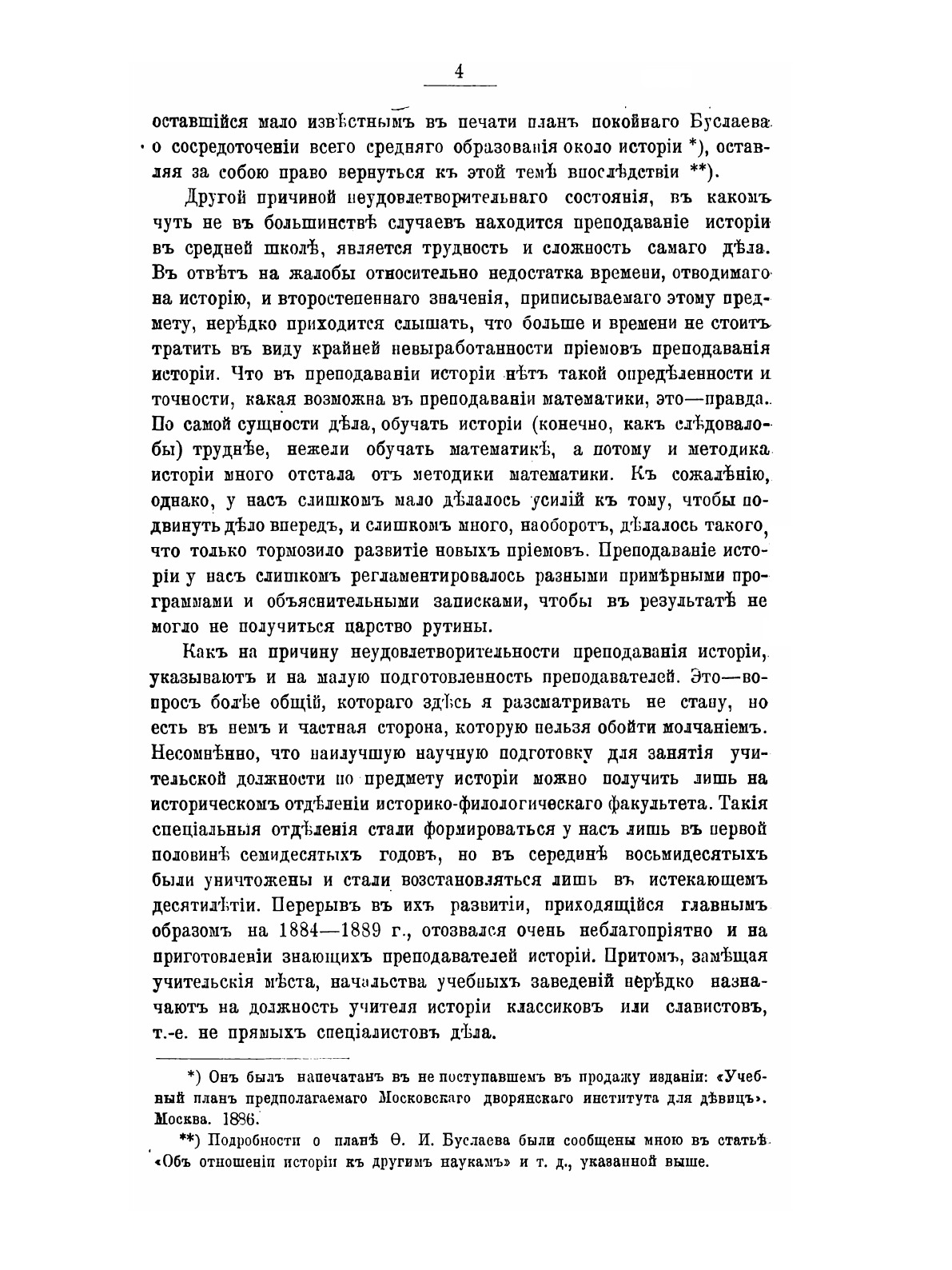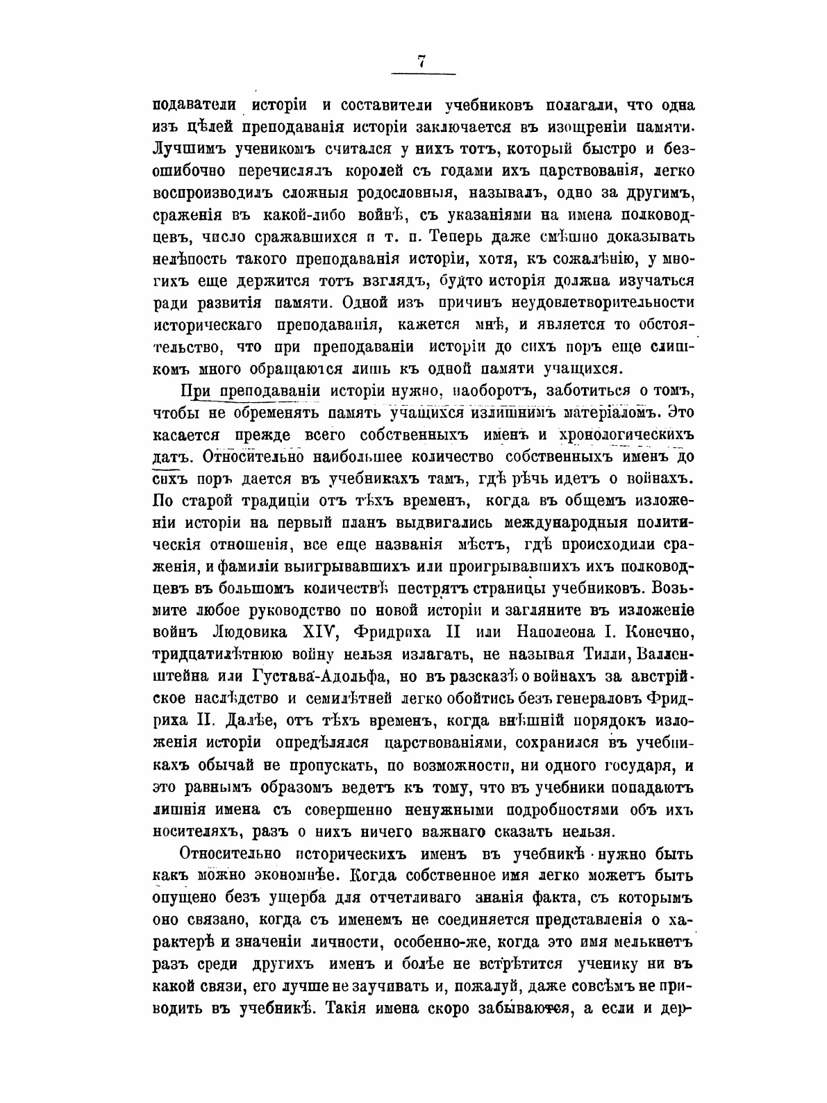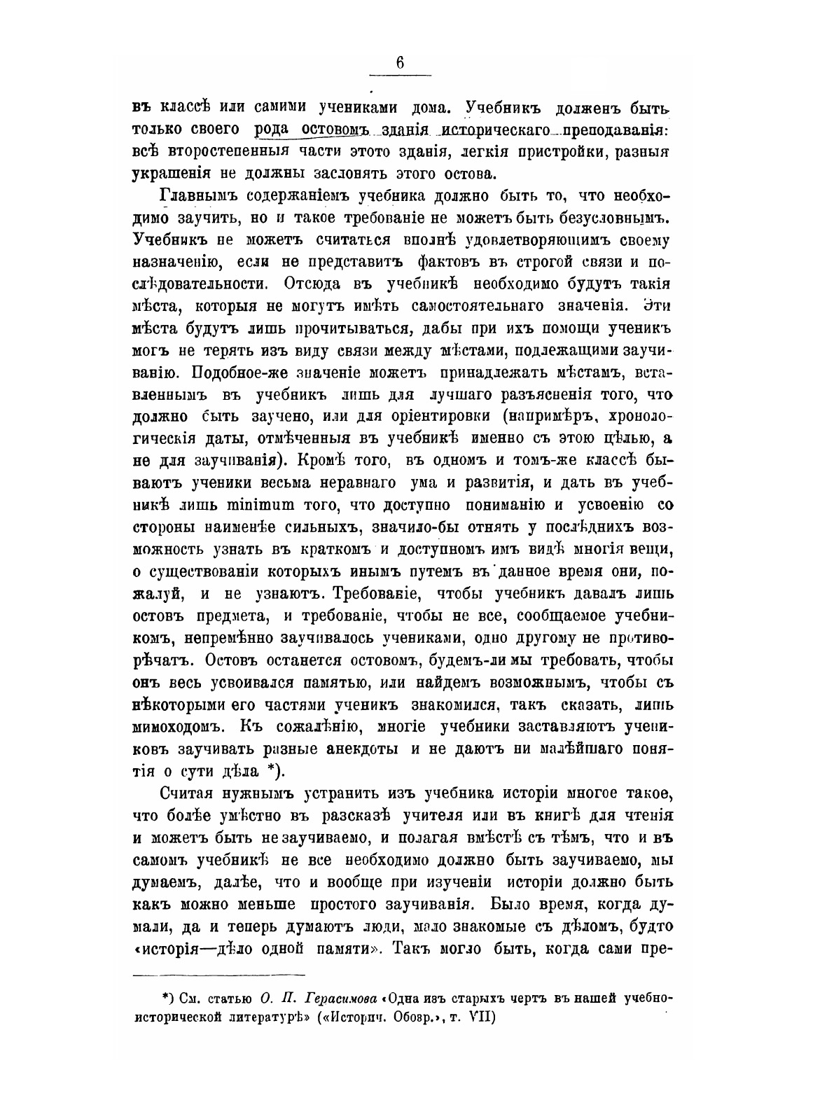 Автор описывает значение учебника истории, выбор и классификацию фактического материала для него, систематизацию и изложение, а также пользование учебником в классе.