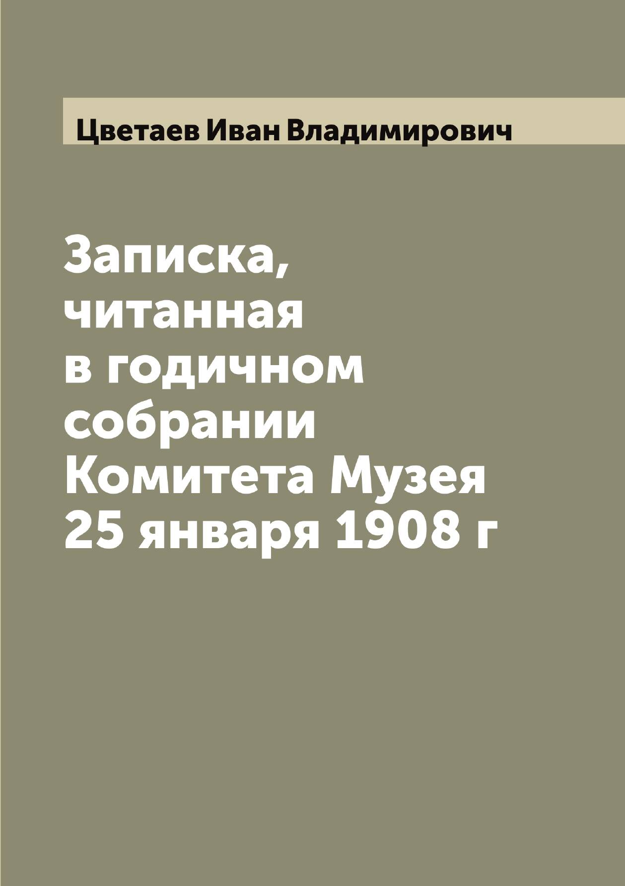 Печатная книга «Записка, читанная в годичном собрании Комитета Музея 25 января 1908 г» в мягкой обложке, язык - русский. В книге 120 страниц, она напечатана на белой офсетной бумаге плотностью 80 г/м². Формат издания — 148x210 мм. Все книги аккуратно упаковываем в прочный трёхслойный непрозрачный картонный конверт.