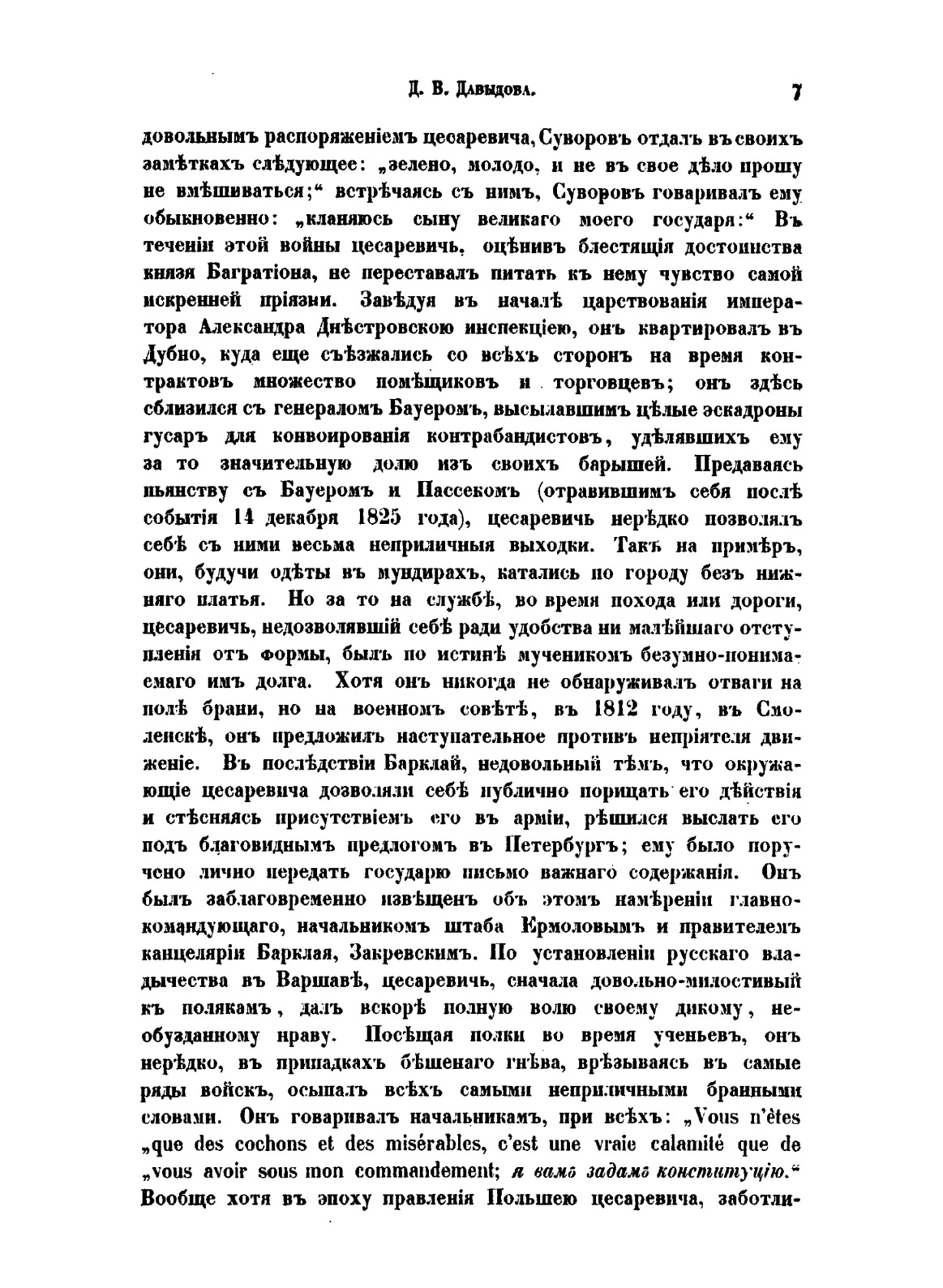 Уникальное издание необычайно острых по своей политической значимости записок Дениса Васильевича Давыдова, едва ли не самого знаменитого героя Отечественной войны 1812 г. Цензура не могла разрешить сделать достоянием гласности отзывы независимого в своих суждениях Давыдова о членах императорской фамилии, о генералах, политиках и дипломатах своего времени, о наиболее резонансных событиях в стране, свидетелем (а иногда - и участником) которых он был. Оценки Давыдовым действий правительства и военного руководства в отношении русской армии, военных действий во время польского восстания 1830 года резко расходились с официальной точкой зрения, принятой в государственных кругах. Эти записки имеют колоссальное значение для историков-профессионалов и для всех истинных любителей отечественной истории. Издание "Записок" было осуществлено в Брюсселе в 1863 году широко известным публицистом и историком, активным деятелем Вольной русской печати князем Петром Долгоруковым.