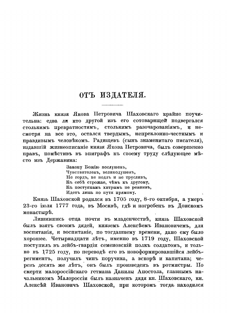 Эта книга — репринт оригинального издания (издательство "Санкт-Петербург: издание "Русской старины"", 1872 год), созданный на основе электронной копии высокого разрешения, которую очистили и обработали вручную, сохранив структуру и орфографию оригинального издания. Редкие, забытые и малоизвестные книги, изданные с петровских времен до наших дней, вновь доступны в виде печатных книг.