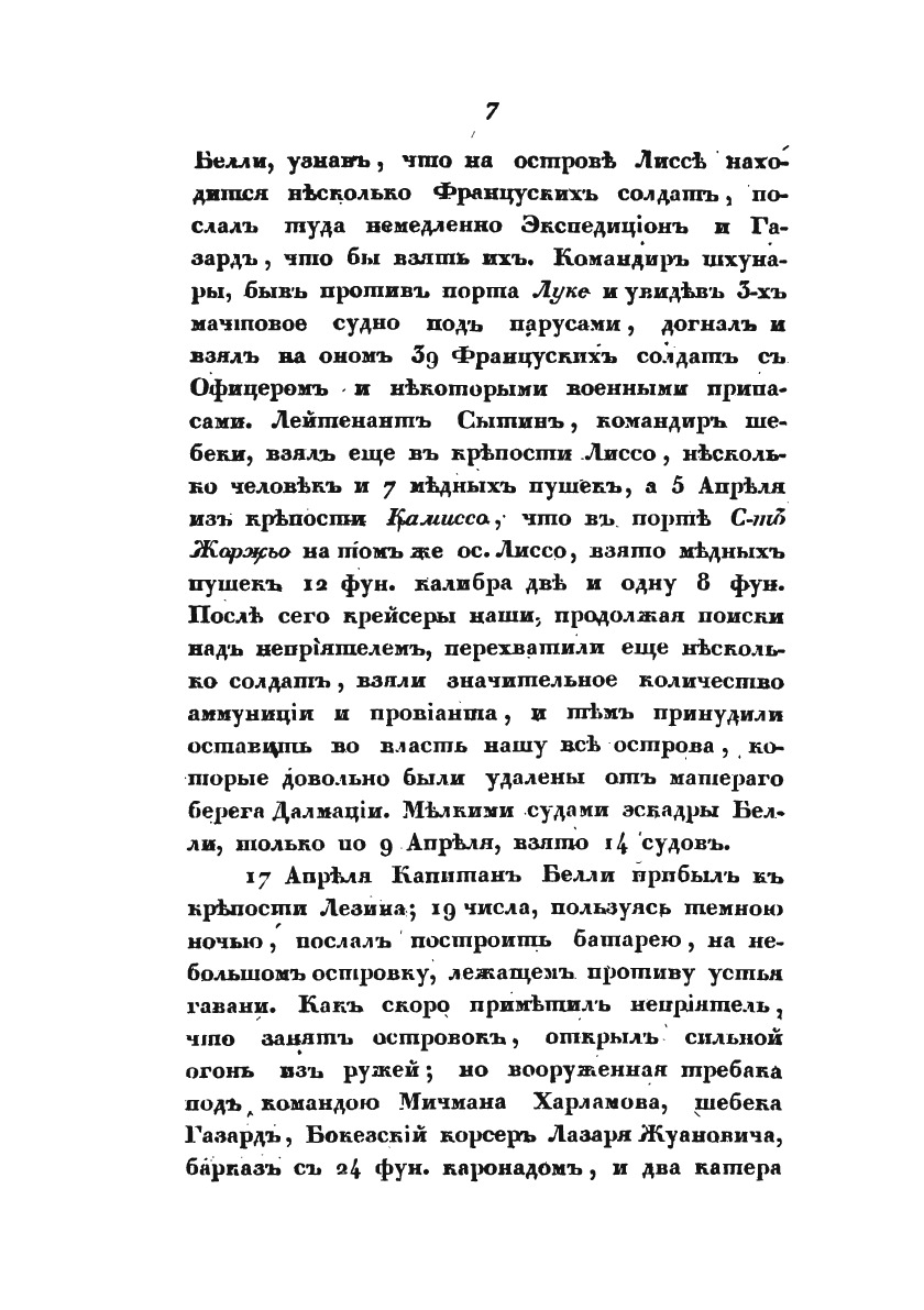 В продолжении кампании на Средиземном море под начальством вице-адмирала Дмитрия Николаевича Сенявина от 1805 по 1810 год.