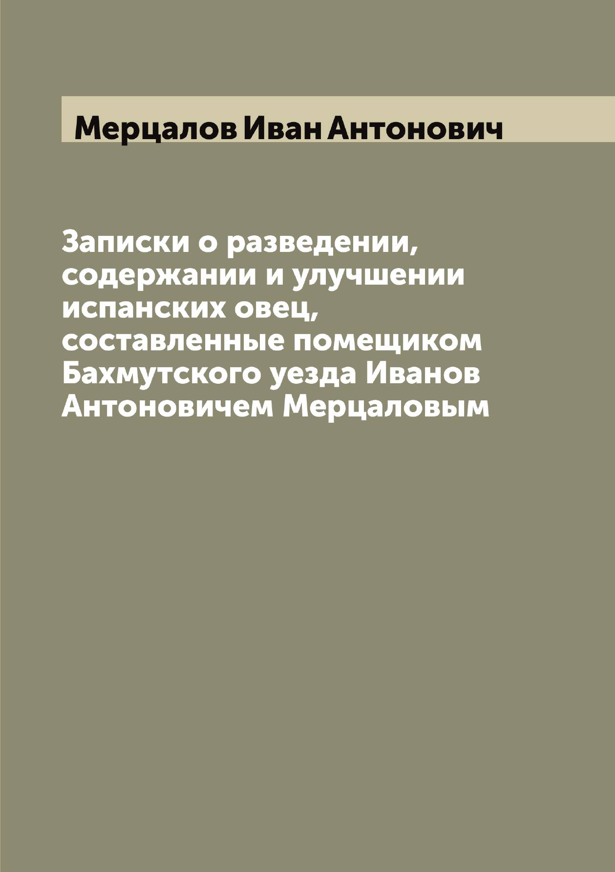 Печатная книга «Записки о разведении, содержании и улучшении испанских овец, составленные помещиком Бахмутского уезда Иванов Антоновичем Мерцаловым» в мягкой обложке, язык - русский. В книге 175 страниц, она напечатана на белой офсетной бумаге плотностью 80 г/м². Формат издания — 148x210 мм. Все книги аккуратно упаковываем в прочный трёхслойный непрозрачный картонный конверт.