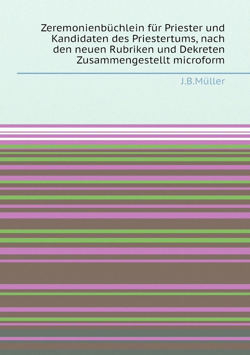 Печатная книга «Zeremonienbüchlein für Priester und Kandidaten des Priestertums, nach den neuen Rubriken und Dekreten Zusammengestellt microform» в мягкой обложке, язык - немецкий. В книге 238 страниц, она напечатана на белой офсетной бумаге плотностью 80 г/м². Формат издания — 148x210 мм. Все книги аккуратно упаковываем в прочный трёхслойный непрозрачный картонный конверт.