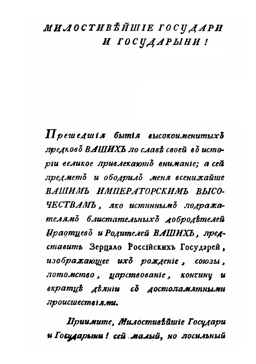 Зеркало, изображающее их родословие, союзы, потомство, время рождения, царствования, кончины и вкратце деянии с достопамятными происшествиями.