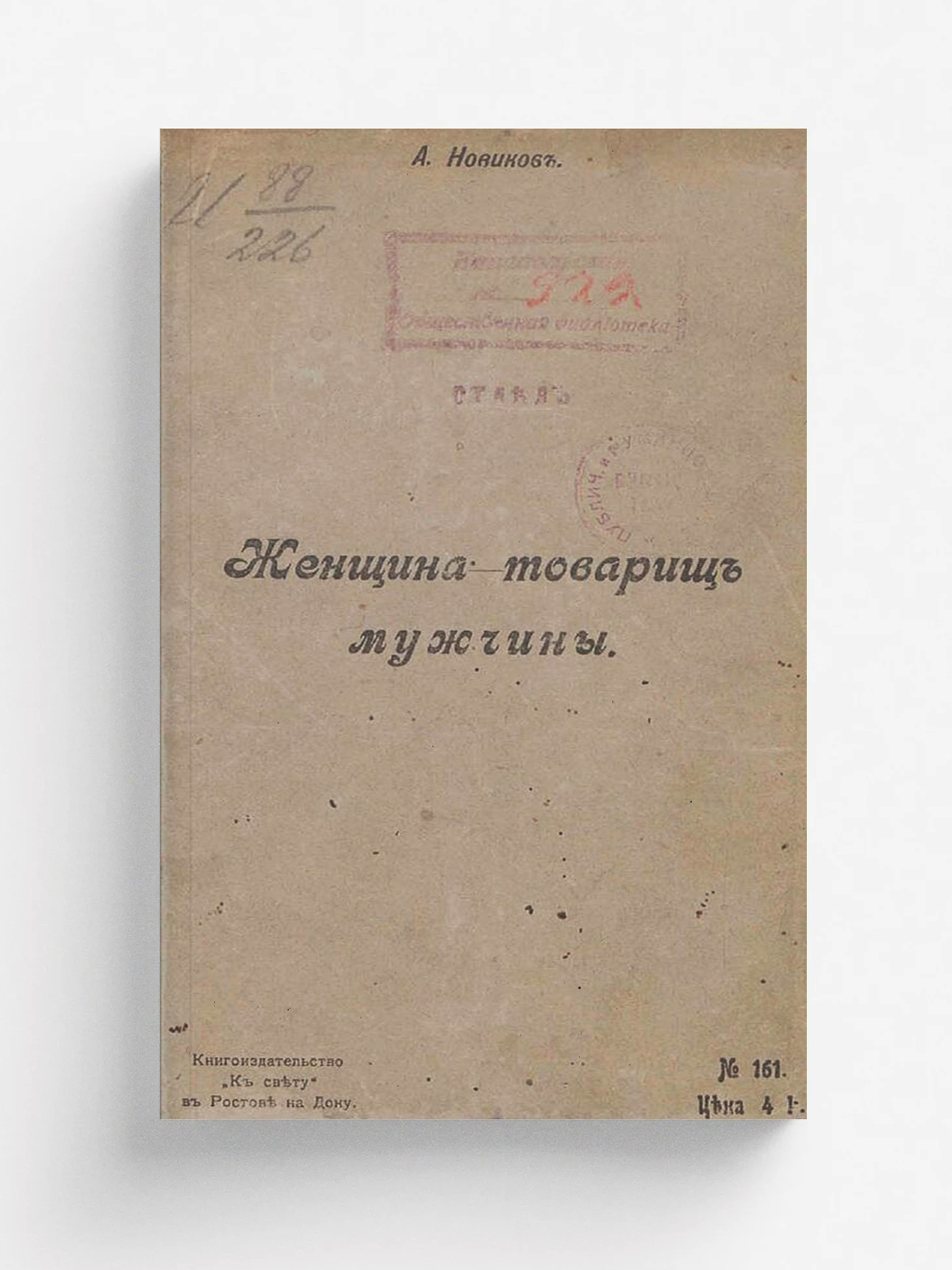 Новиков, Александр Иванович (1861–1913). Женщина — товарищ мужчины / А. Новиков. — Ростов-на-Дону : К свету, [1907]. — 40 с.; 21.