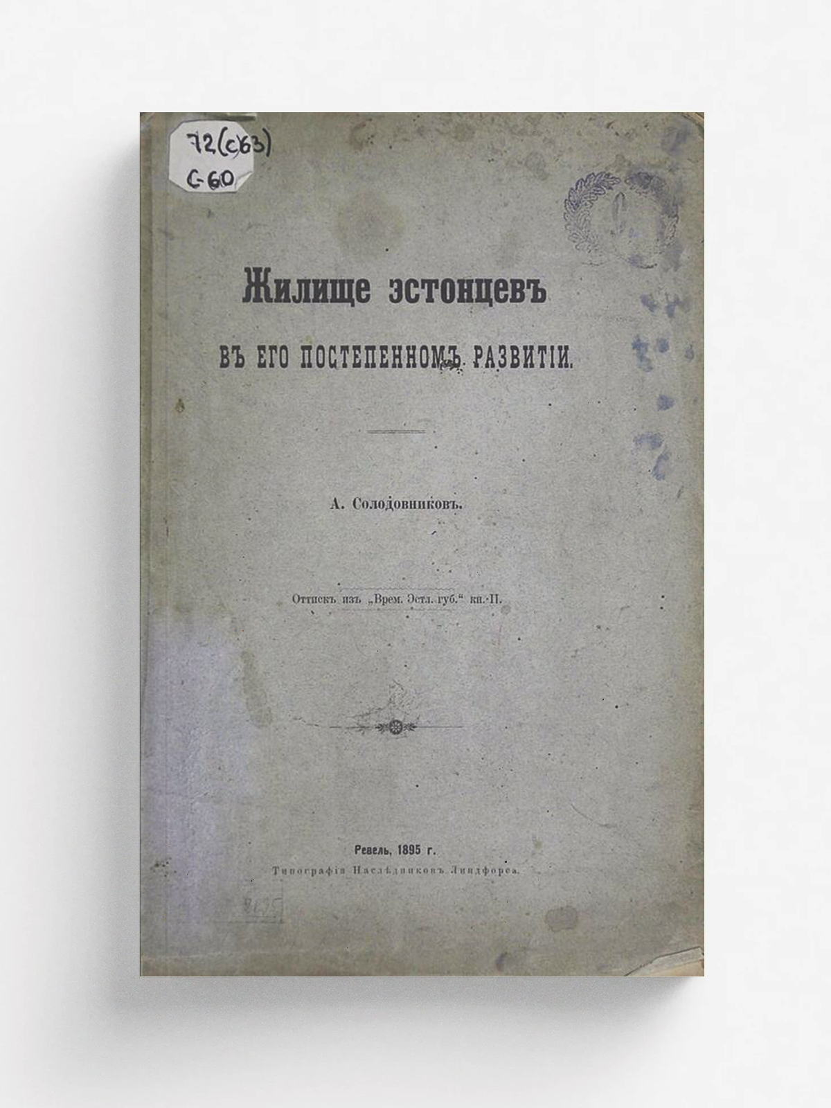 Солодовников, А. В. Жилище эстонцев в его постепенном развитии. — Ревель : Типография наследников Линдфорса, 1895. — 24 с.