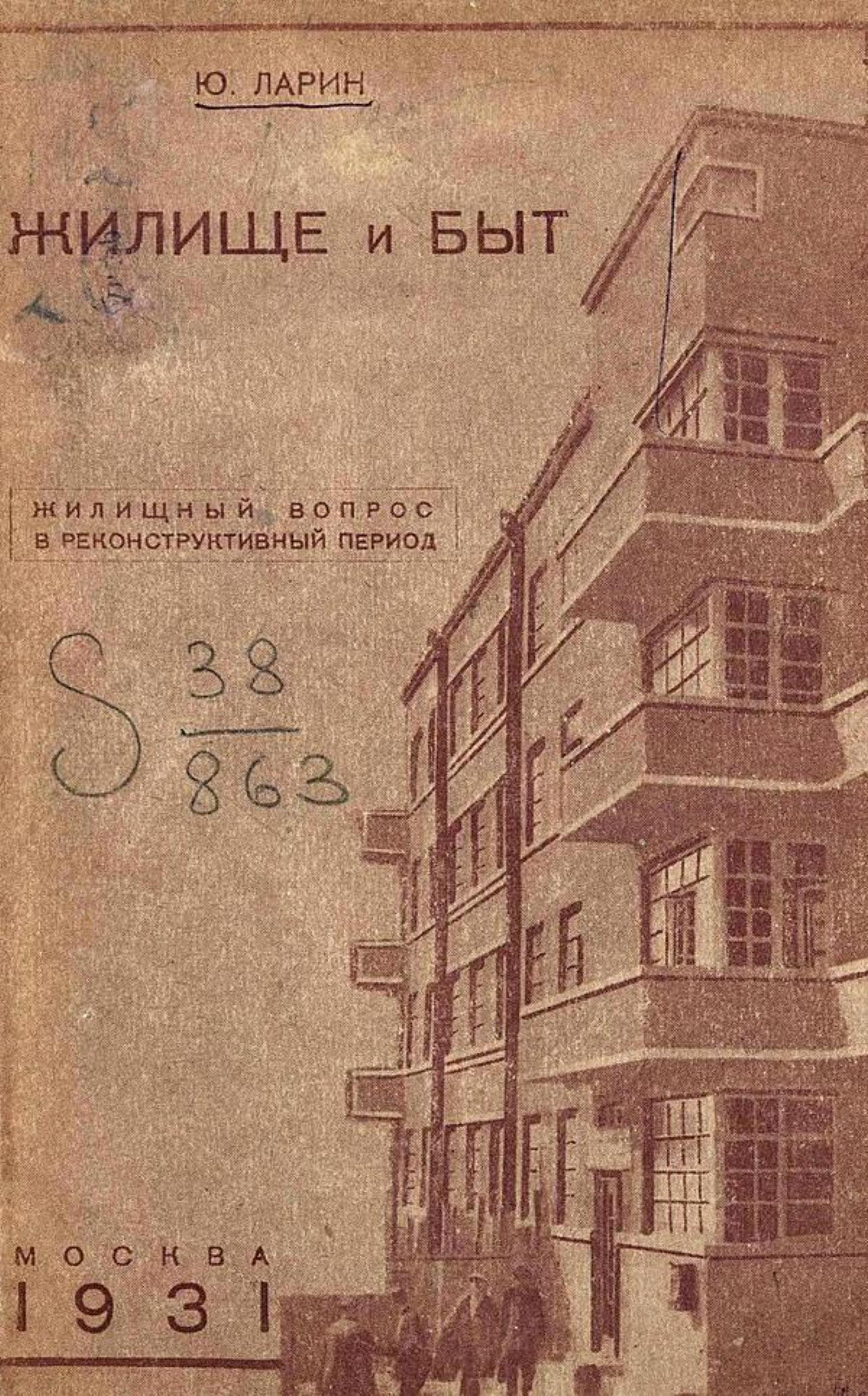 Ларин, Юрий (1882–1932). Жилище и быт : жилищный вопрос в реконструктивный период / Ю. Ларин. — Москва : Власть советов, 1931. — 126, [1] с. : табл.; 22 см.