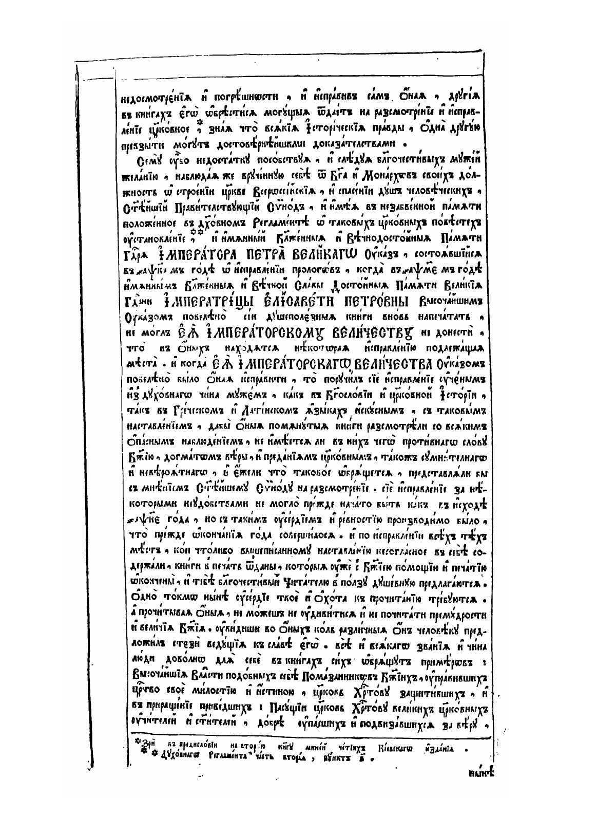 Во славу святой, единосущной, животворящей и неразделимой Троицы, Отца, и Сына, и Святого Духа: Повелением Благочестивейшего Самодержавнейшего Великого Царя Нашего Императора Петра Федоровича всей России: при Благочестивейшей Великой Царице Нашей Императрице Екатерине Алексеевне, и при Благоверном Царе Цесаревиче и Великом Князе Павле Петровиче.