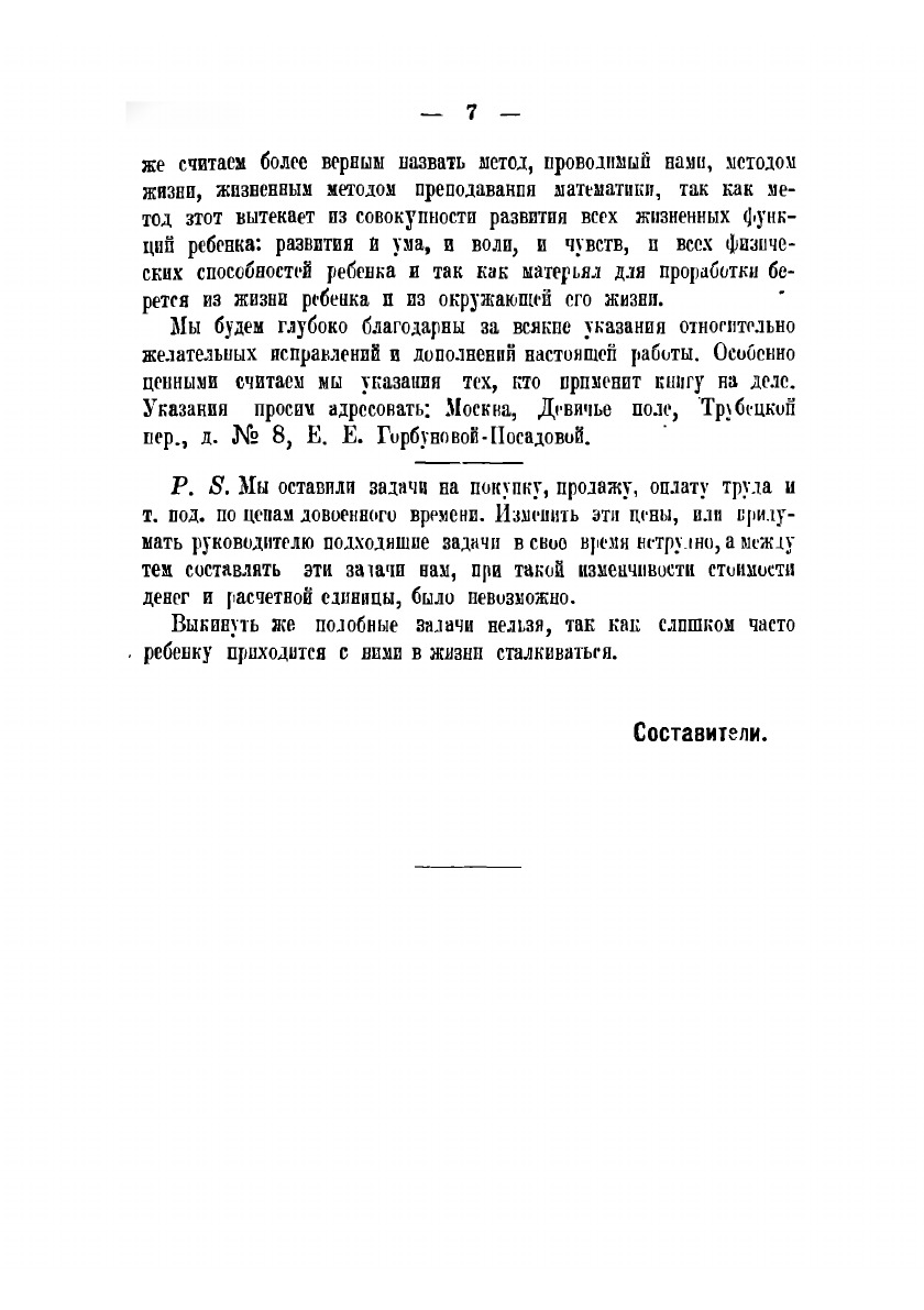 Первый год обучения арифметике в школе и семье, разработанный на основе детской самодеятельности, на опыте и наглядности.