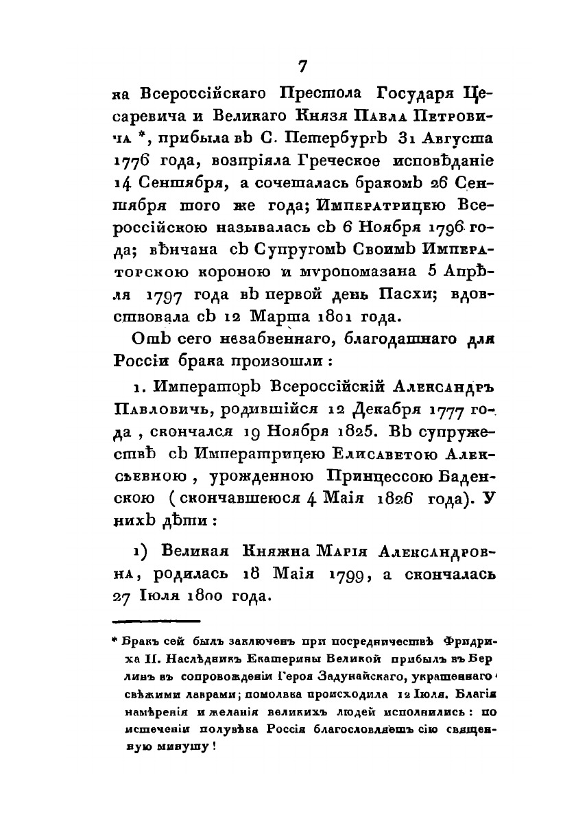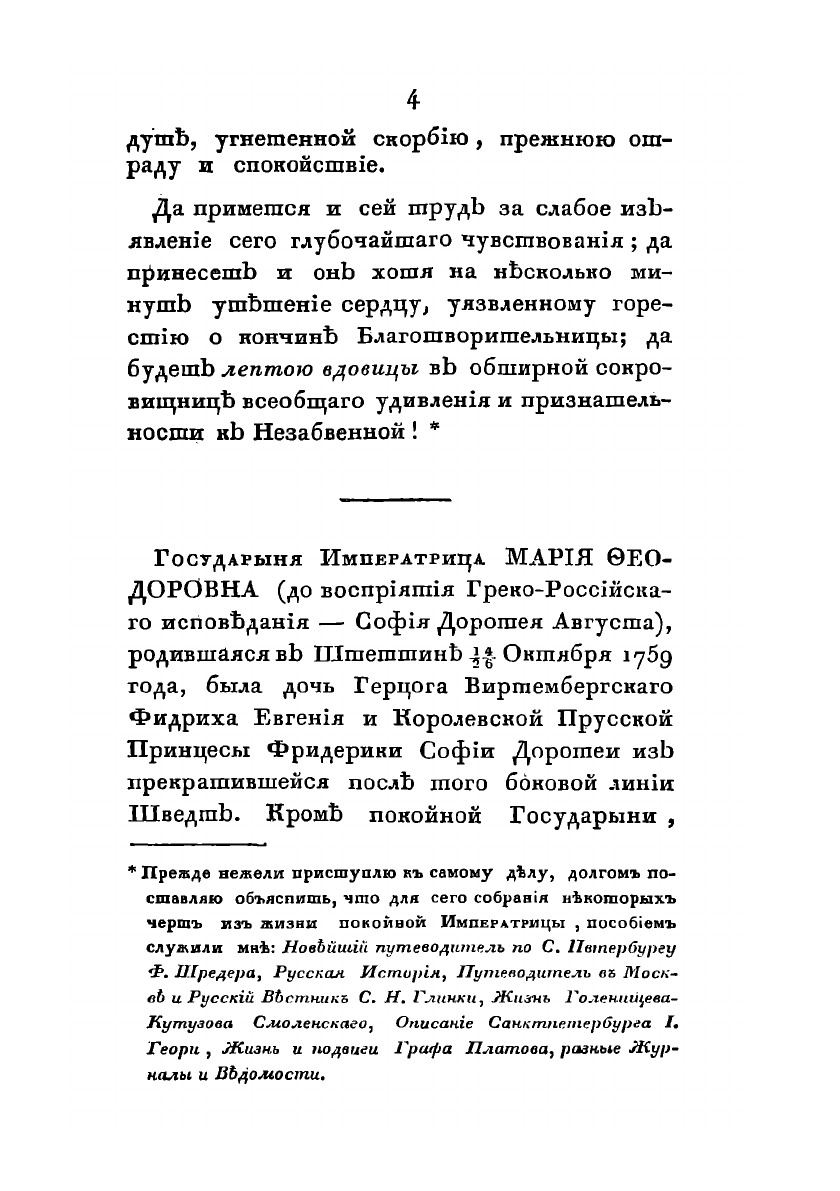 Жизнь в бозе почиющей государыни императрицы Марии Феодоровны. С приложением стихотворений на кончину императрицы В. Жуковского, Шевырева, А. Попова, С.Н. Глинки. В 2х частях. Часть 1. Москва, типография С. Селивановского, 1829 г.