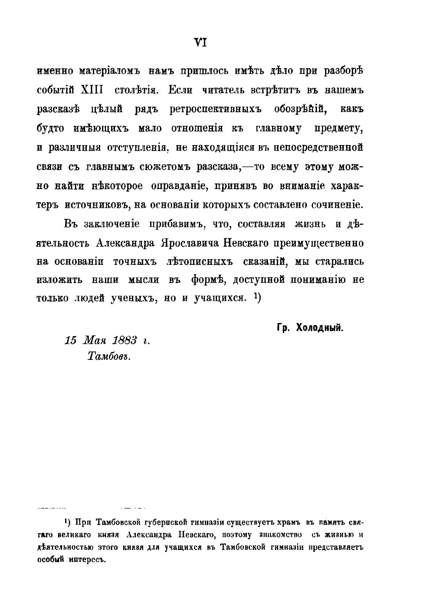 Жизнь и дѣятельность великаго князя Александра Ярославича Невскаго, одного изъ самыхъ выдающихся дѣятелей на Руси въ XIII столѣтiи, не только представляетъ чрезвычайно много интереса въ историческомъ отношенiи и объясняетъ намъ многiя явленiя этой печальной эпохи.