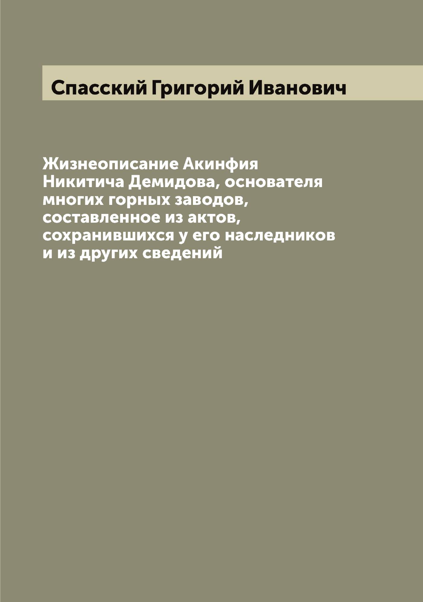 Печатная книга «Жизнеописание Акинфия Никитича Демидова, основателя многих горных заводов, составленное из актов, сохранившихся у его наследников и из других сведений» в мягкой обложке, язык - русский. В книге 115 страниц, она напечатана на белой офсетной бумаге плотностью 80 г/м². Формат издания — 165x235 мм. Все книги аккуратно упаковываем в прочный трёхслойный непрозрачный картонный конверт.