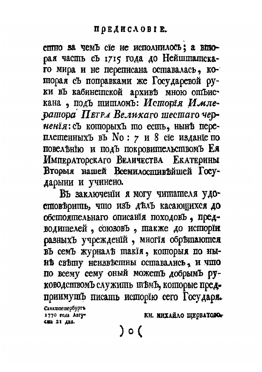 Журнал или Поденная записка, блаженныя и вечнодостойныя памяти Государя Императора Петра Великаго с 1698 года до заключения Нейштатскаго мира. Напечатан с обретающихся в Кабинетной архиве списков, правленных собственною рукою Его Императорскаго Величества. Издано при Императорской Академии наук в 1770 г.