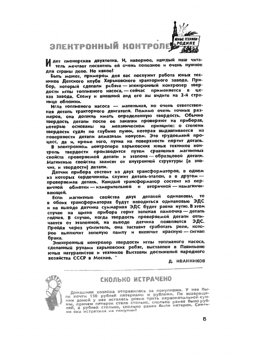 «Юный техник» — ежемесячный детско-юношеский журнал о науке и технике.Основан в Москве в 1956 году как иллюстрированный научно-технический журнал ЦК ВЛКСМ и Центрального совета Всесоюзной пионерской организации им. В. И. Ленина для пионеров и школьников.В популярном виде доносит до читателя (в первую очередь школьника) достижения отечественной и зарубежной науки, техники, производства. Побуждает к научно-техническому творчеству, содействует профессиональной ориентации школьников. Регулярно публикует произведения известных писателей-фантастов — Кира Булычёва, Роберта Силверберга, Ильи Варшавского, Артура Кларка, Филипа К. Дика, Леонида Кудрявцева и других.