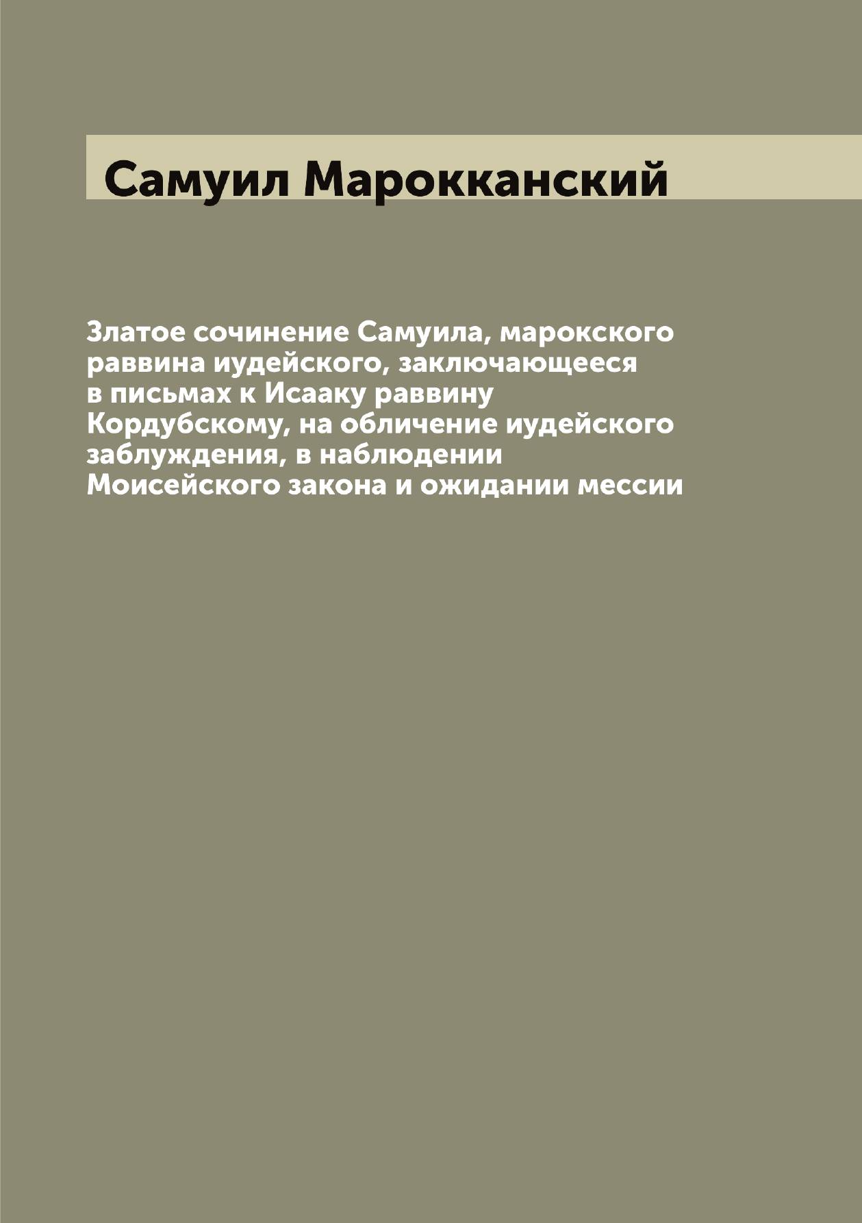 Печатная книга «Златое сочинение Самуила, марокского раввина иудейского, заключающееся в письмах к Исааку раввину Кордубскому, на обличение иудейского заблуждения, в наблюдении Моисейского закона и ожидании мессии» в мягкой обложке, язык - русский. В книге 126 страниц, она напечатана на белой офсетной бумаге плотностью 80 г/м². Формат издания — 148x210 мм. Все книги аккуратно упаковываем в прочный трёхслойный непрозрачный картонный конверт.
