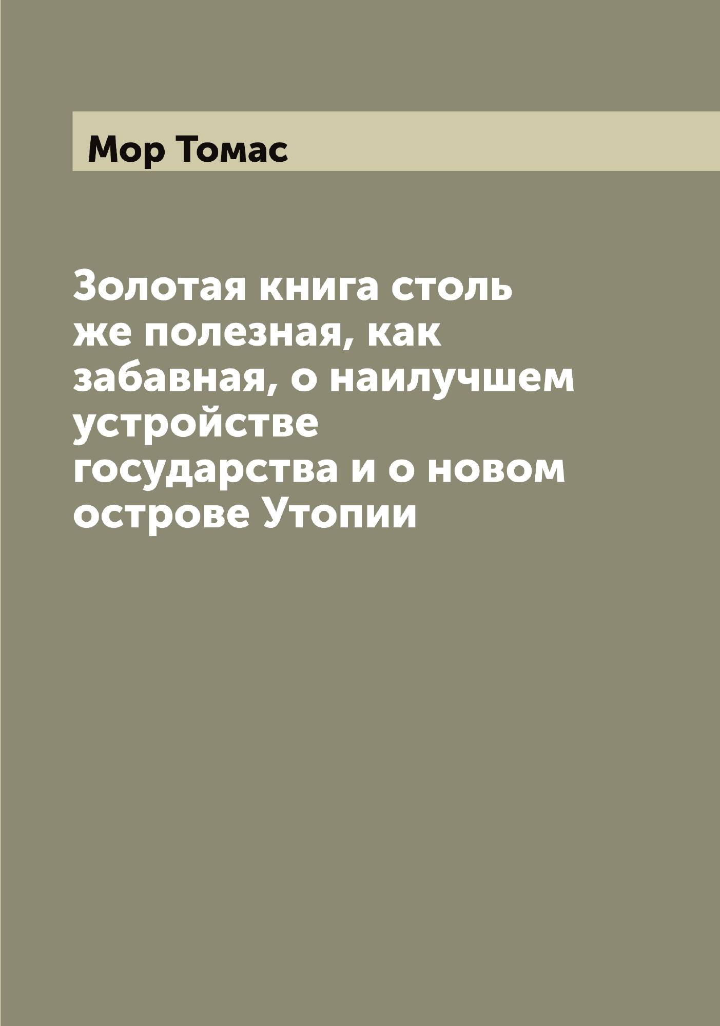Печатная книга «Золотая книга столь же полезная, как забавная, о наилучшем устройстве государства и о новом острове Утопии» в мягкой обложке, язык - русский. В книге 257 страниц, она напечатана на белой офсетной бумаге плотностью 80 г/м². Формат издания — 165x235 мм. Все книги аккуратно упаковываем в прочный трёхслойный непрозрачный картонный конверт.