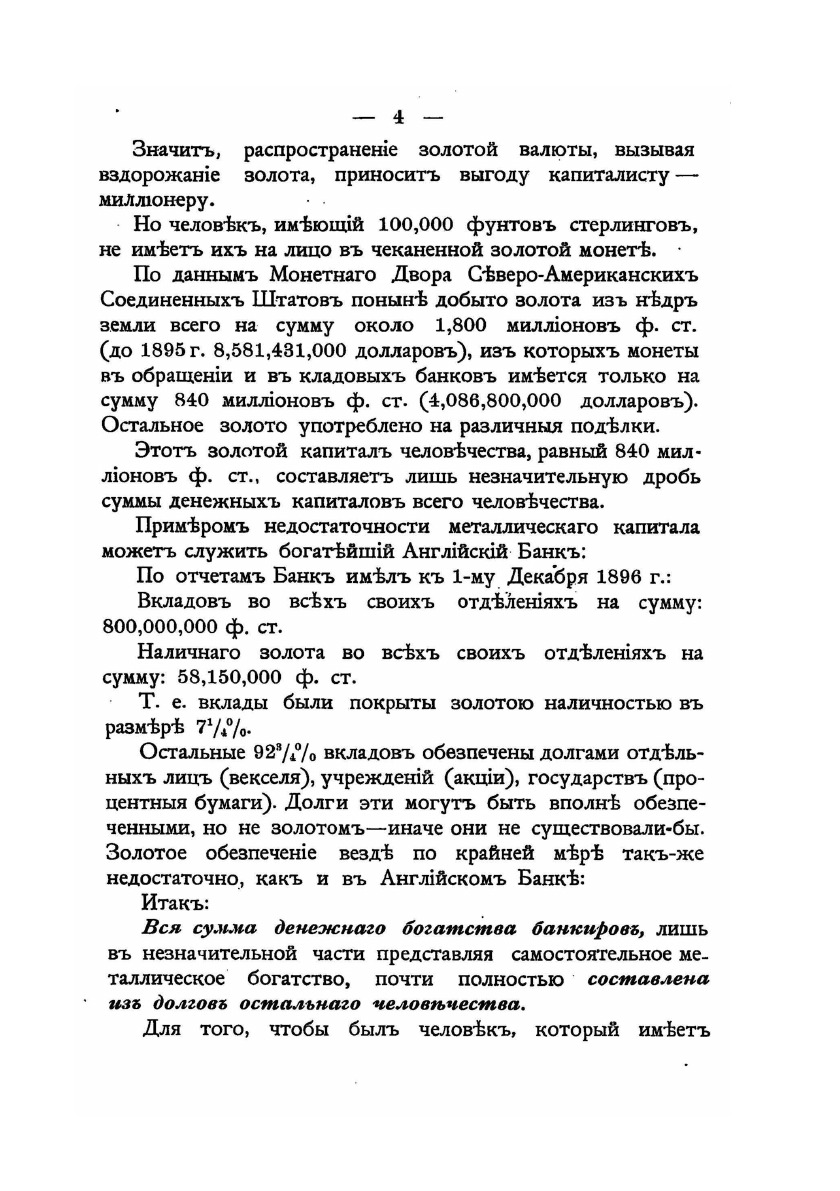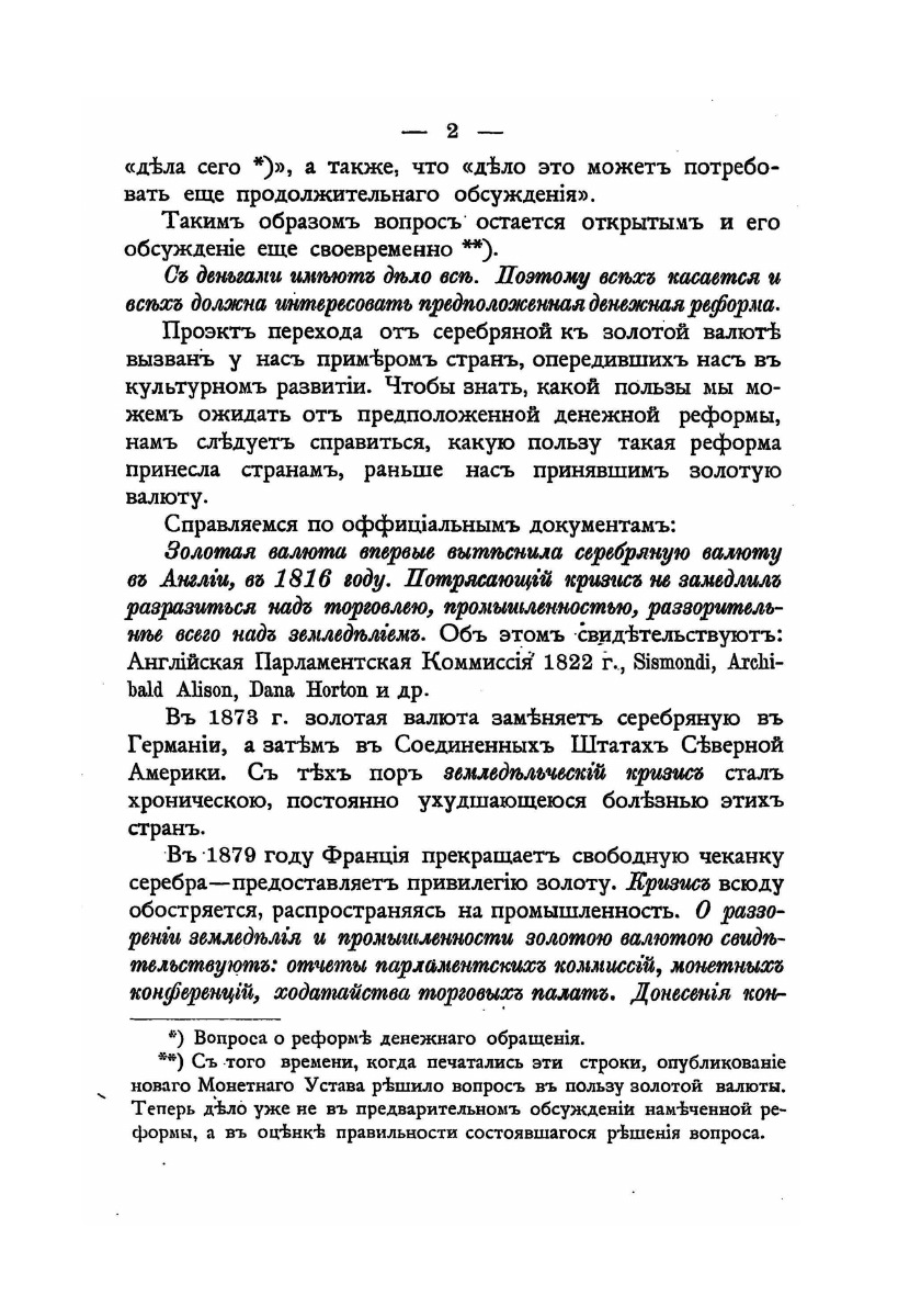 С 1895 по 1899 год, пока введение золотой валюты в росии относилось к области проектированных мер, мы считали своим долгом всеми зависящими от нас средствами способствовать выяснению вопроса не о том, осуществима эта мера, или нет, а о том, полезно это или вредно отзовется ее осуществление на экономических интересах русского народа и Российского Государства.